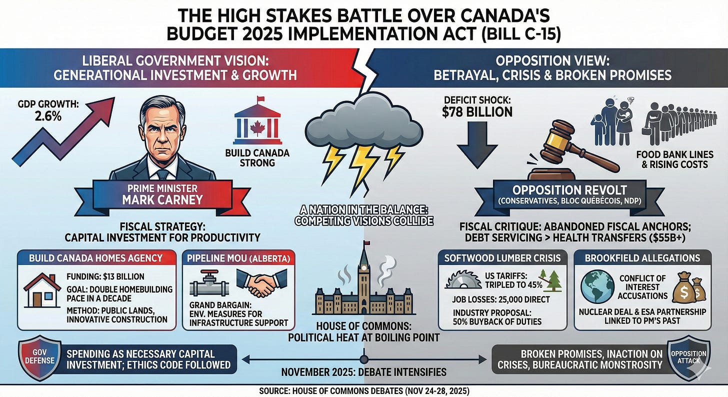 At the center of the storm was the Budget 2025 Implementation Act itself. To the Liberals, it was a blueprint for generational investment. To the Conservatives and the Bloc Québécois, it was a document of betrayal—a collection of broken promises that mortgaged the future of the nation while failing to address the burning crises of the present.