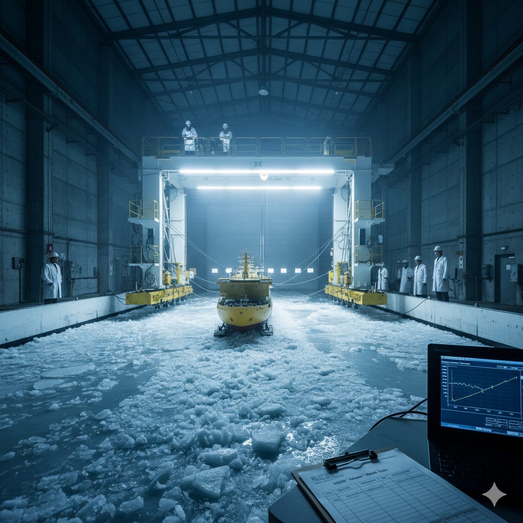 What a fascinating read! Thank you for revealing this incredible engineering. It's truly amazing how they simulate such extreme conditions with scale models to ensure these massive icebreakers are fit for purpuse. Such a clever approach for de-risking big projects and advancing our Arctic navigation knowlege. Brilliant!