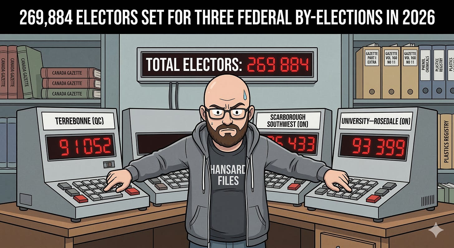In the silent machinery of Canadian democracy, the Canada Gazette has just published the exact size of the battlefield for three federal by-elections. On March 13, 2026, an EXTRA edition (Vol. 160, No. 3) revealed the preliminary lists of electors: 91,052 names in Terrebonne, Quebec; 85,433 in Scarborough Southwest, Ontario; and 93,399 in University—Rosedale, Ontario. The combined total of 269,884 electors now stands as the official measure of the contests that will fill vacant seats in the House of Commons.