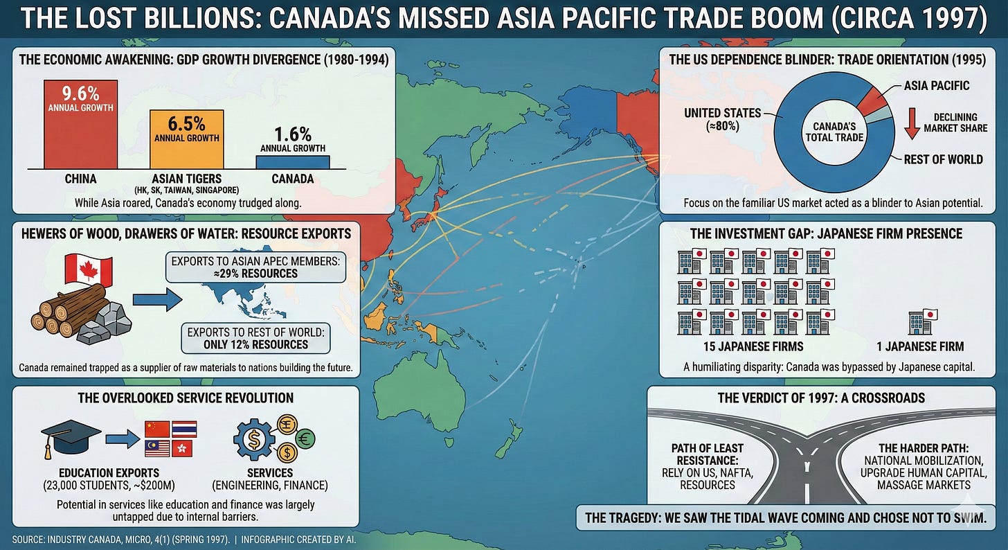 It was the spring of 1997 and the global economic tectonic plates were shifting with a violence that few in Ottawa seemed to fully comprehend. While the ink was drying on the North American Free Trade Agreement and Canadian businesses were looking comfortably south toward the United States, a massive awakening was occurring across the ocean. The Asia Pacific trade boom was not merely a trend. It was a fundamental reordering of the world’s wealth, and the warning signs were flashing red: Canada was missing the boat.
