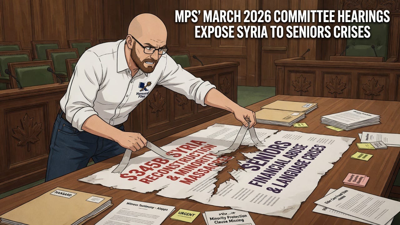 This two-day blitz of March 2026 committee hearings hands the story back to ordinary Canadians. When committees sit in parallel rooms probing everything from minority safety in post-Assad Syria to financial exploitation of senior women in your neighbourhood, the choices made, or deferred, will shape security, rights and opportunity for years ahead. Taxpayers and voters now hold the ultimate accountability.