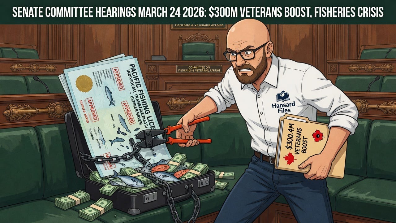 That single panel, part of Senate committee hearings March 24 2026, set the tone for a day when multiple committees peeled back layers of federal spending, coastal livelihoods and national priorities. By evening, senators in another room would hear Melanie Sonnenberg, president of the Canadian Independent Fish Harvesters’ Federation, declare that the Pacific fisheries licensing regime was failing the very people who harvest the resource.