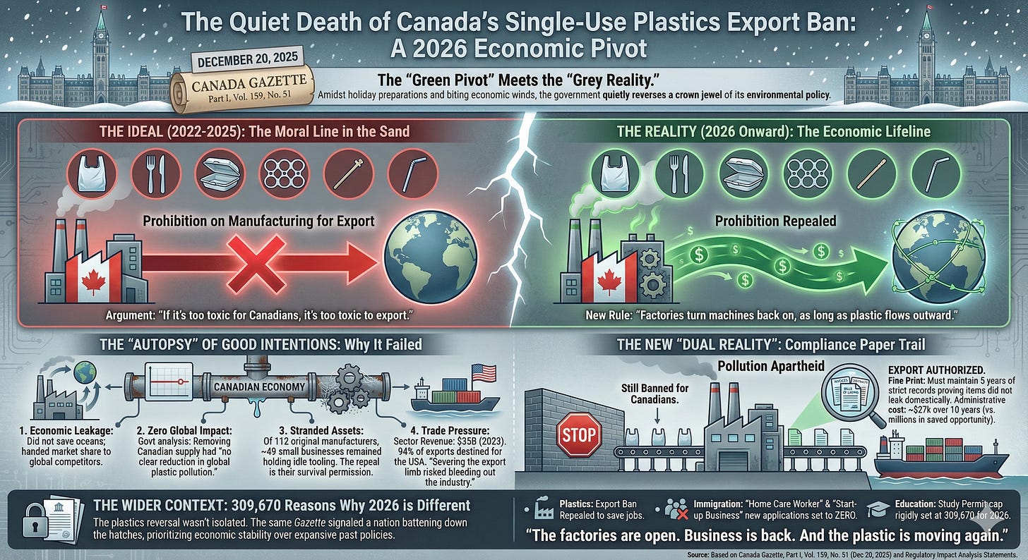 On the snowy morning of December 20, 2025, amidst the typical flurry of holiday preparations in Ottawa, the government of Canada quietly released a document that signaled a profound shift in the nation’s economic and environmental soul. Buried within the dense, bilingual columns of the Canada Gazette, Part I, Vol. 159, No. 51, was a admission of defeat—or perhaps, a cold calculation of survival. The Single-use Plastics Export Ban, once the crown jewel of Canada’s zero-plastic-waste ambition, was effectively dead.